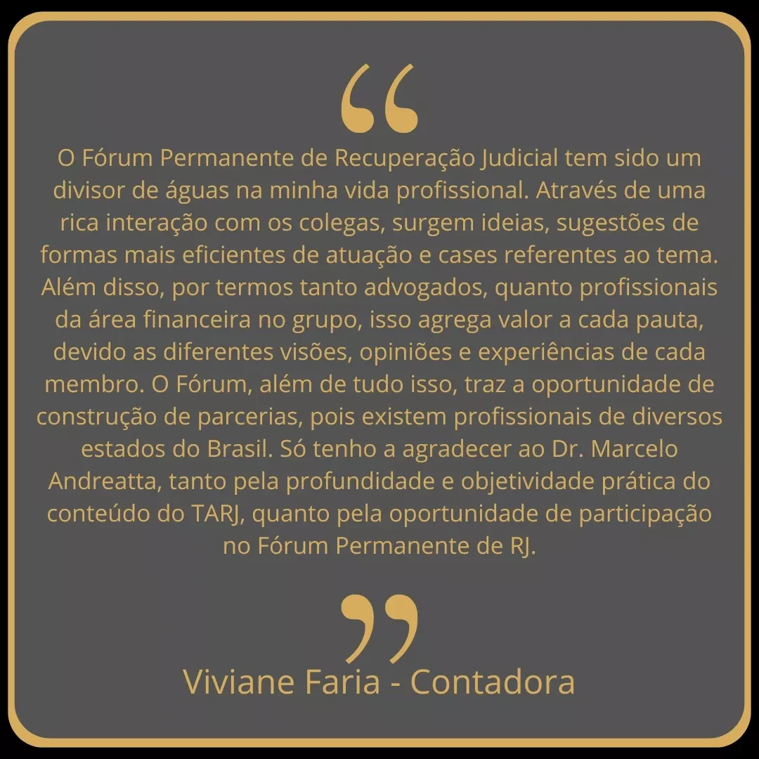 Grande oportunidade do Treinamento. O Fórum Permanente de Recuperação Judicial constituirá um espaço primordial de interação entre os colegas. Destinado a fomentar um ambiente rico em troca de conhecimentos e experiências, o fórum viabilizará a produção e disseminação de conteúdos jurídicos de alta relevância, além de propiciar oportunidades para o estabelecimento de parcerias estratégicas entre os participantes. Assim, este fórum não apenas enriquecerá o repertório profissional dos envolvidos, mas também contribuirá significativamente para a evolução da prática jurídica no campo da recuperação judicial.